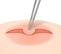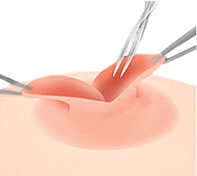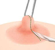 1.После проведения наркоза или местной анестезии, хирург вытаскивает и разрезает сосок.
