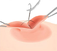 4.Во избежание повторного западания, нижняя часть тканей фиксируется внутренними швами;