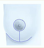 Вертикальная подтяжка груди. Разрез проходит по соску, огибает ареолу и спускается вертикально вниз до подгрудной складки. Этот вариант операции по подтяжке молочных желез позволяет устранить умеренное провисание тканей и выполняется подтяжка груди без имплантов.